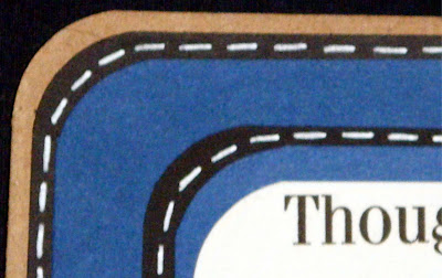 Here is my card. I really wanted to make a manly card for Robert. I printed the sentiment on my computer and fit everything for my card base (it's an A2 - 4 1/4" x 5 1/2"). The black layer is cut at 4" x 5 1/4" and the blue layer is 3 3/4" x 5". I then rounded the corners using my 1/2" Corner Chomper.